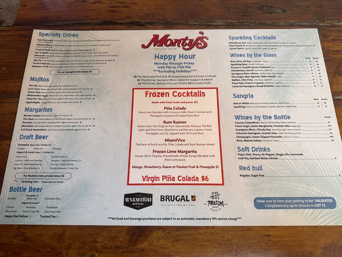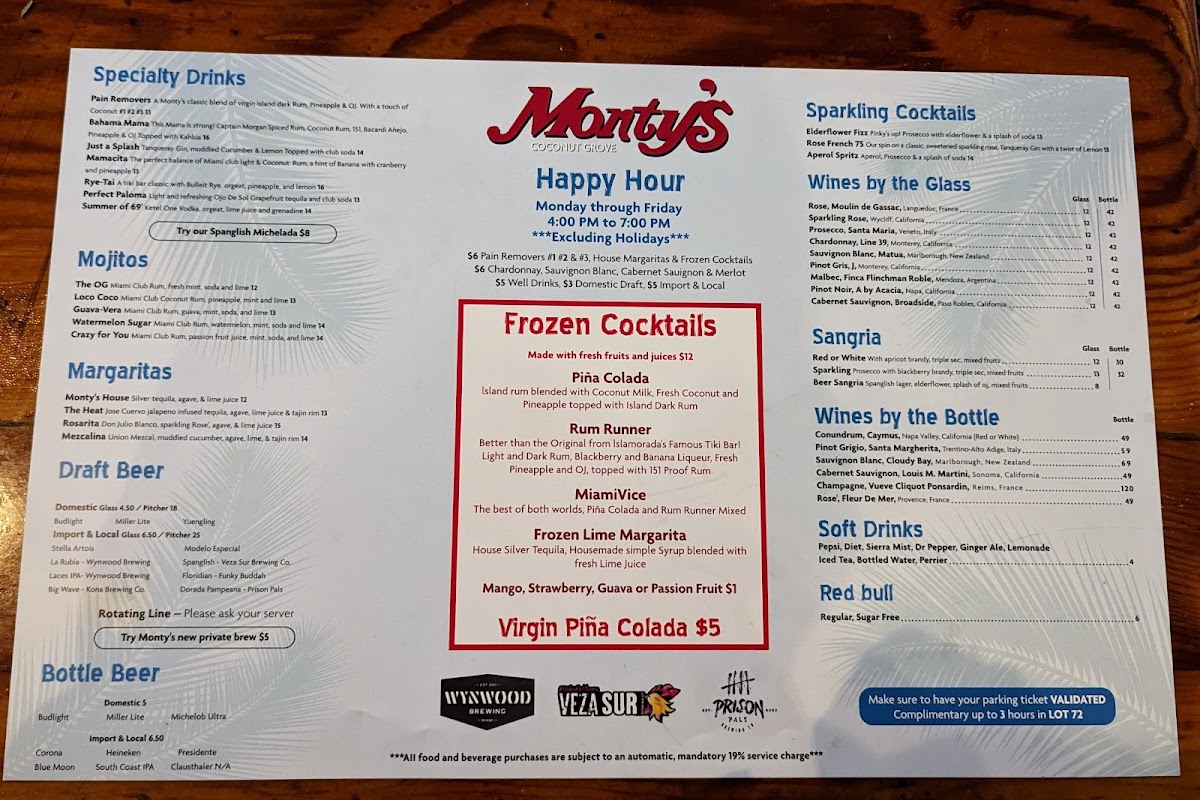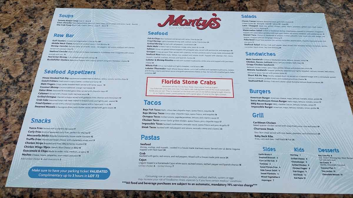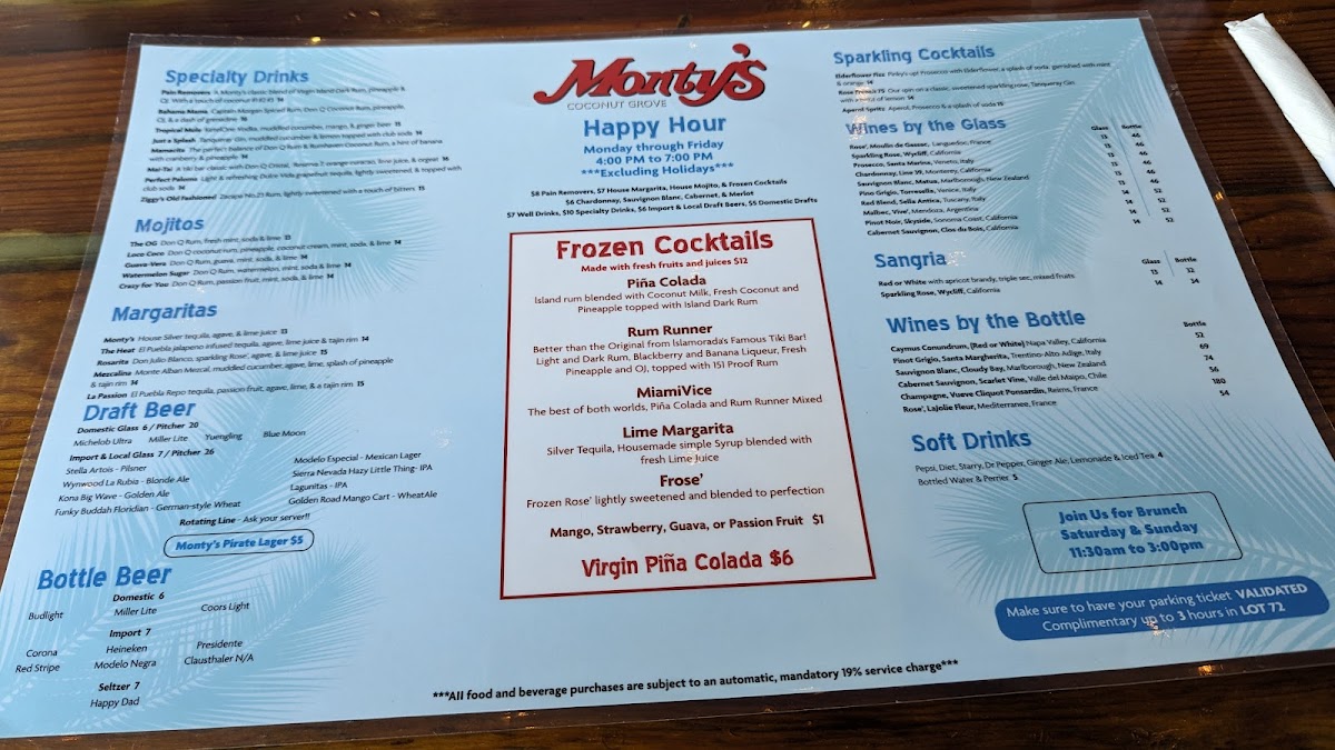 Monty's Coconut Grove Menu